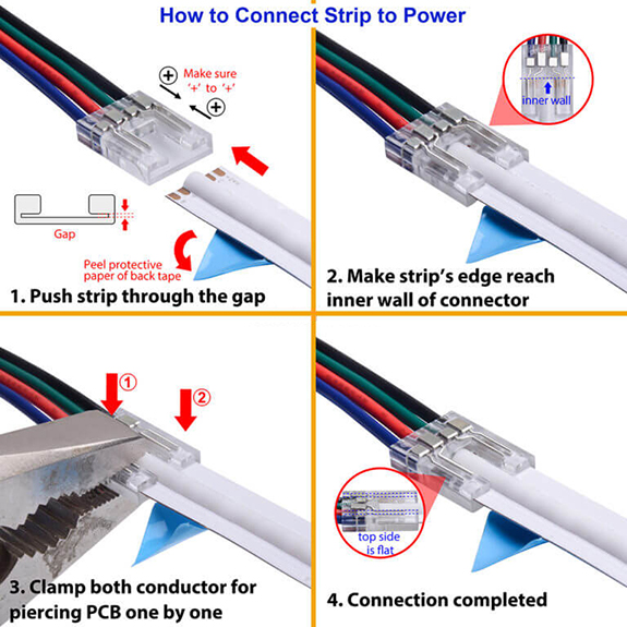 | 10mm 4 Pin for IP20 COB LED Strip: | |||