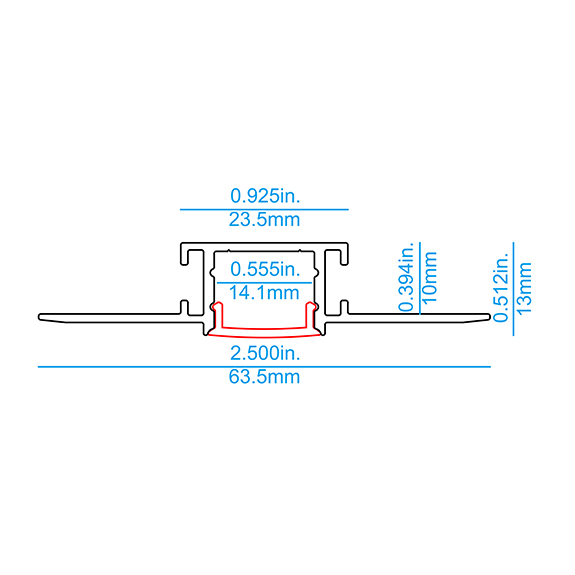 - Aluminum Extrusion for recessed mounting in drywall structures.